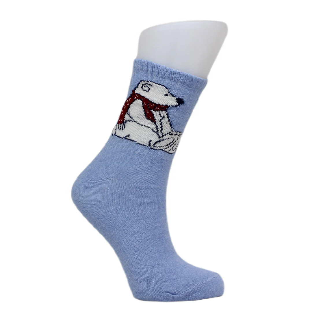 Look Socks Atkılı Ayıcık Karakter Desenli Mavi Kolej Çorap
