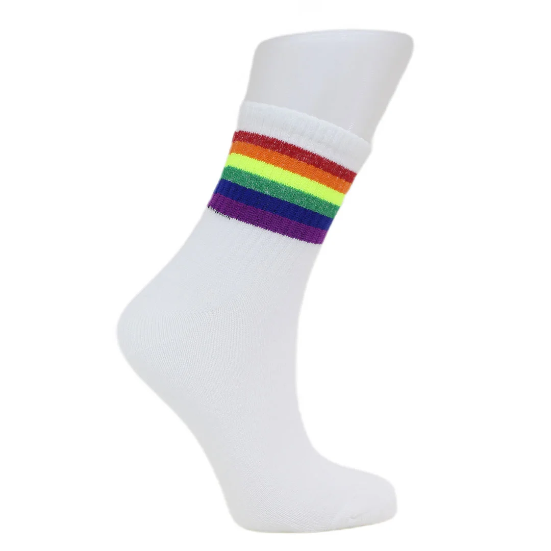 Look Socks Gökkuşağı Çizgili Beyaz Kolej Çorap