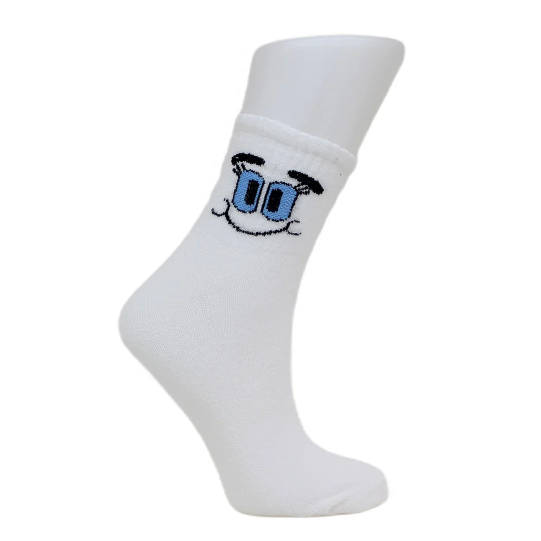Look Socks Gülen Yüz Renkli Göz Karakter Desenli Beyaz Kolej Çorap
